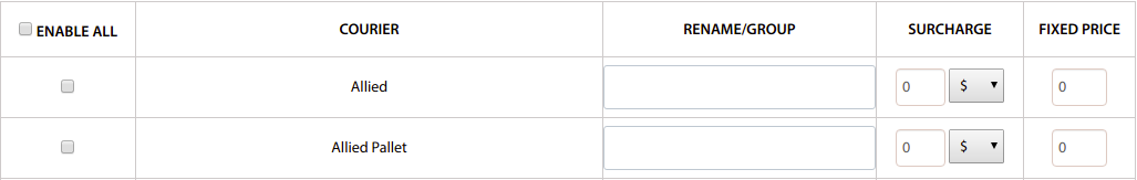 If you would like to disable quotes from a particular courier service, then you can uncheck the box left of the row, if unselected quotes for this courier will not be calculated.