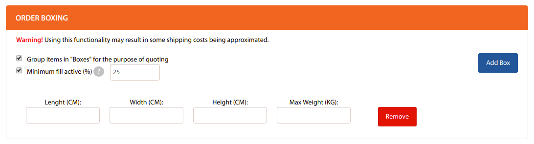 Enabling Group items in “Boxes” for the purpose of quoting checkbox option will automatically pack the items in the suited box and will be used for calculating rates.
