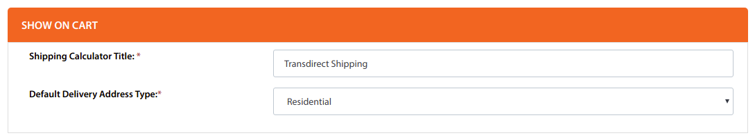 You can customize the Shipping Calculator Title and set the default delivery address type (Residential or Commercial) to be displayed on cart.